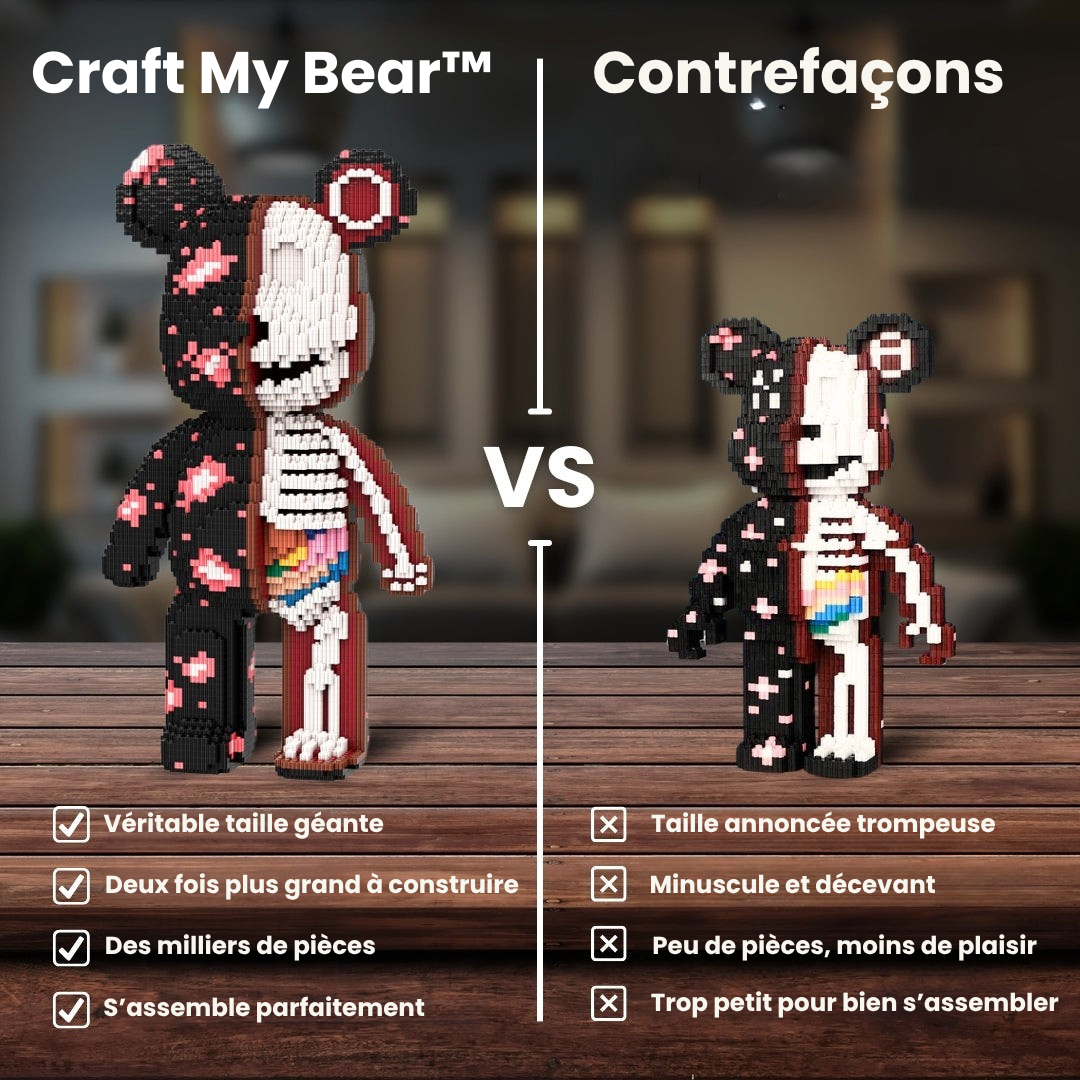 Évitez les contrefaçons bon marché et découvrez la différence Craft My Bear : des designs brevetés et une qualité irréprochable.